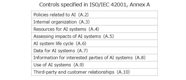 ISO/IEC 42001 provides a set of reference “controls” as indicators for risk measures. By comparing the risk measures based on the results of the risk assessments by the organizations with those specified in ISO/IEC 42001, organizations can evaluate whether their risk measures are comprehensive and whether any necessary controls have been overlooked.